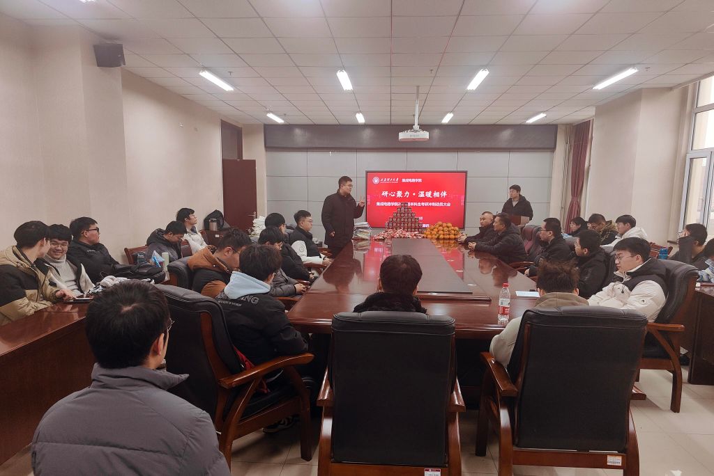 考研员工代表集电2101班长刘旭峰分享了自己的复习经验与心路历程,并鼓励同学们以最昂扬的斗志,最刻苦的精神,最坚韧的毅力,投入备考冲刺中。高宝楼老师对考试过程当中的相关事项以及要点向全体考研学子进行了细致的讲解,并鼓励同学们把握考研冲刺的节奏,为同学们送上最后的冲刺祝福与嘱托。