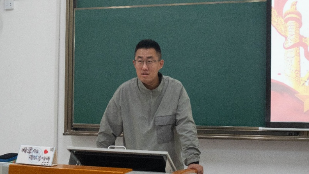 随后,校团委校园文化部副部长许多多以《弘扬红色精神 讲好中国故事》为题开展专题授课。他结合丰富的史料与生动的案例,系统讲解了中国共产党领导下艰难卓绝的十四年抗战史,带领学员们重温革命先辈浴血奋战的峥嵘岁月,引导大家深切缅怀先烈、传承红色基因。授课过程中,许多多副部长还鼓励青年学子立足时代坐标,主动担当起讲好中国故事、传播中国声音的使命责任,在眺望未来中坚定理想信念。