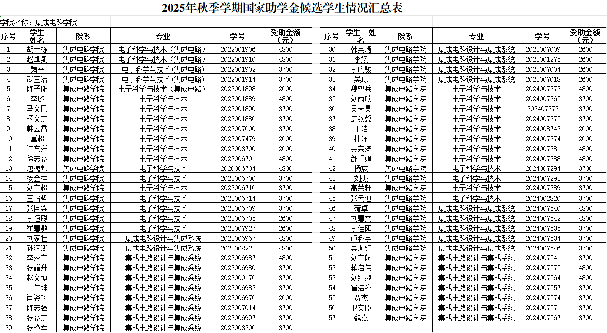 关于2024-2025学年本科生 国家助学金拟推荐候选人公示